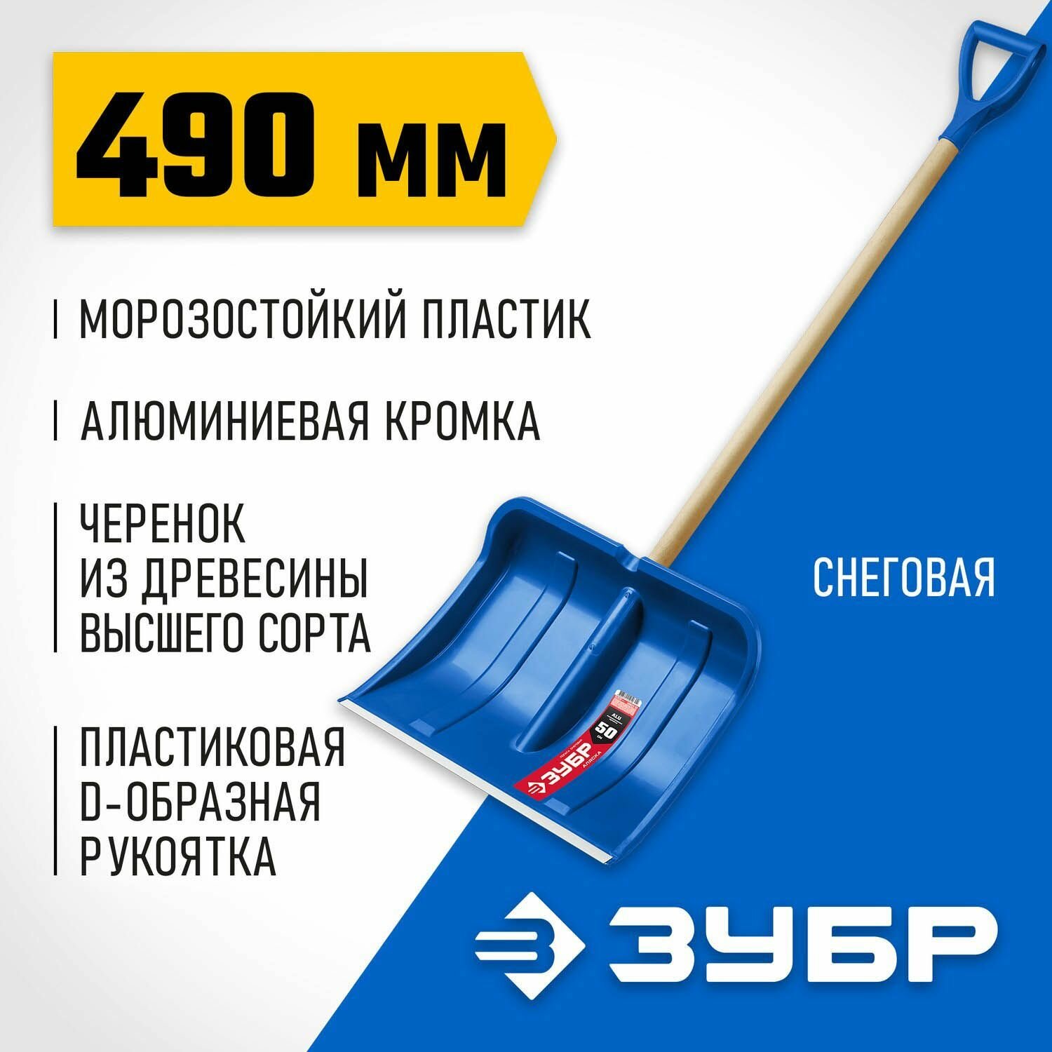 Снеговая лопата ЗУБР Аляска 490 мм, пластиковая с алюминиевой планкой, деревянный черенок, V-ручка 39923