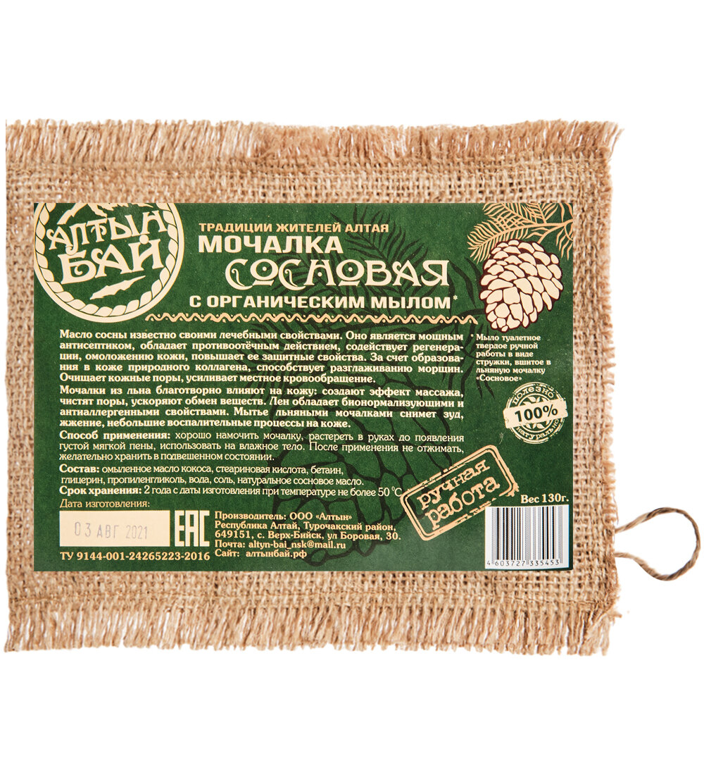 Мочалка льняная с органическим мылом Сосновая, 130 г интересное: