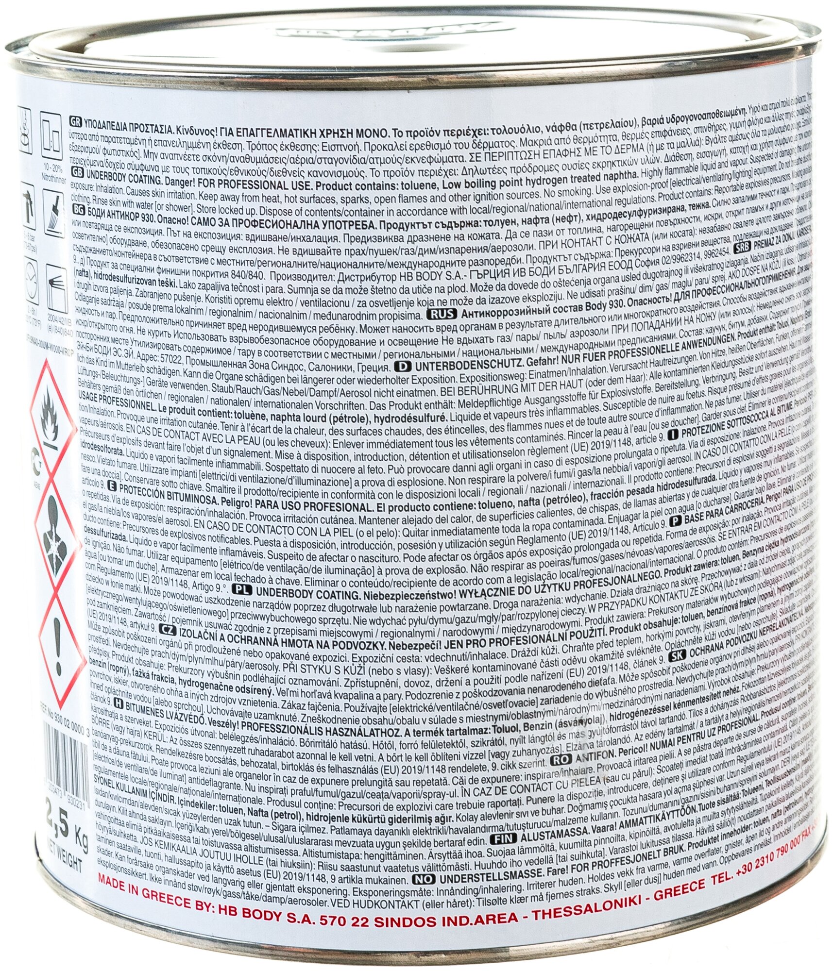 9300200003_антикоррозийный Состав Body 930! Черн. 2,5кг Состав На Основе Каучука, Битума И Смол HB BODY арт. 9300200003