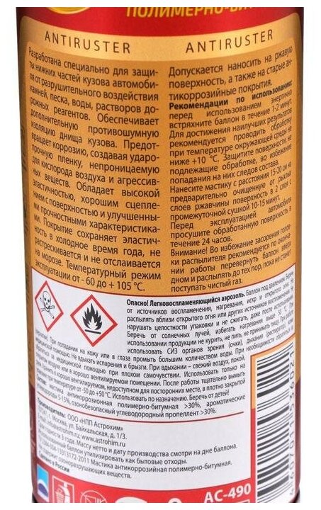 Мастика Антикоррозийная Astrohim Полимерно-Битумная, Серия Antiruster, Аэрозоль 520 Мл Ac-490 ASTROHIM арт. AC490