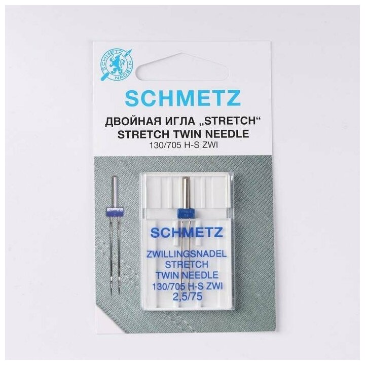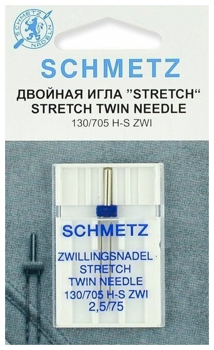 Швейные иглы стрейч двойные № 75/2.5, 1 штука, Schmetz 130/705Н-S ZWI для швейных машин