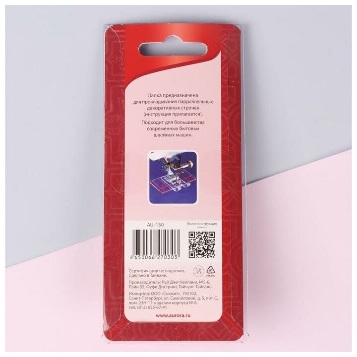 Лапка для швейной машинки Aurora с разметкой для параллельных швов, в блистере (AU-150)
