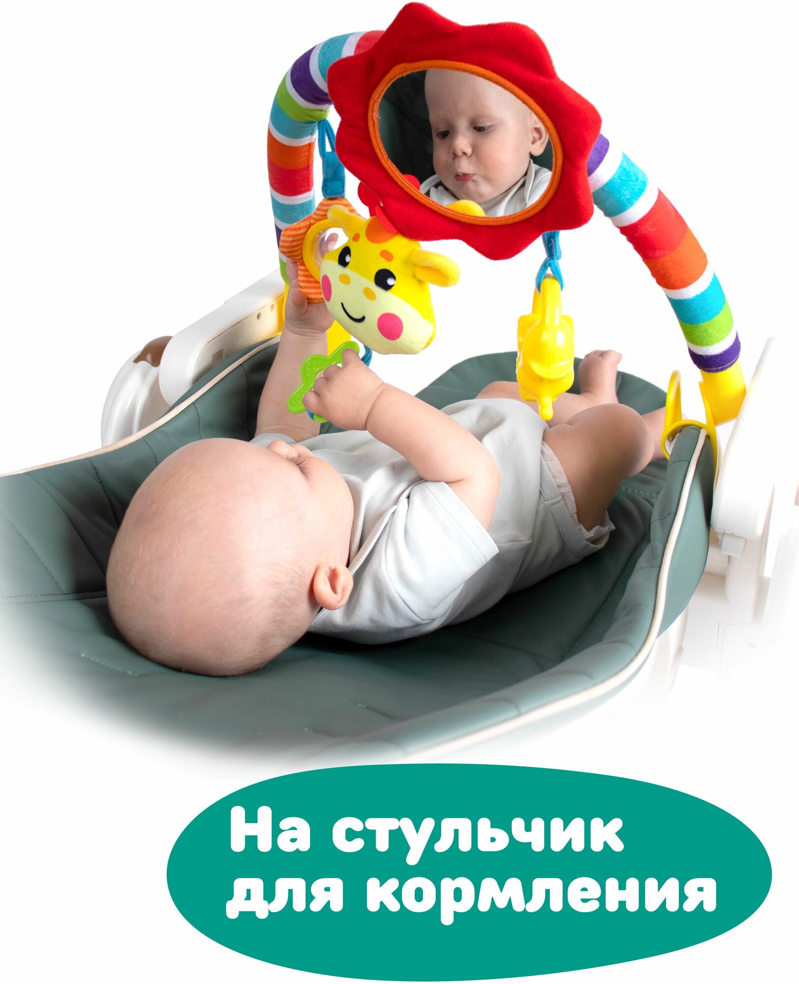 Развивающая дуга "Жирафик": 4 съемных игрушек, крепление прищепка, 3в1 кровать, коляска, автокресло Жирафики 939625