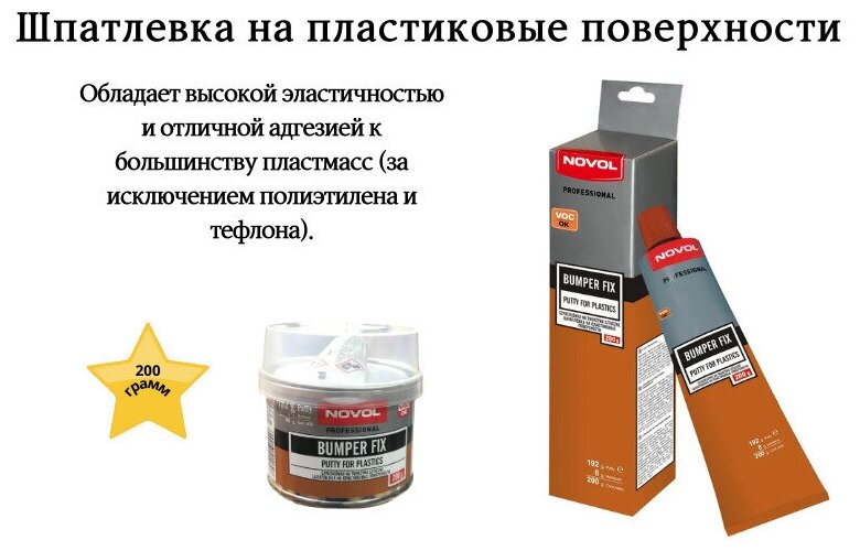 Шпатлевка novol bumper fix для пластика 200гр с отвердителем