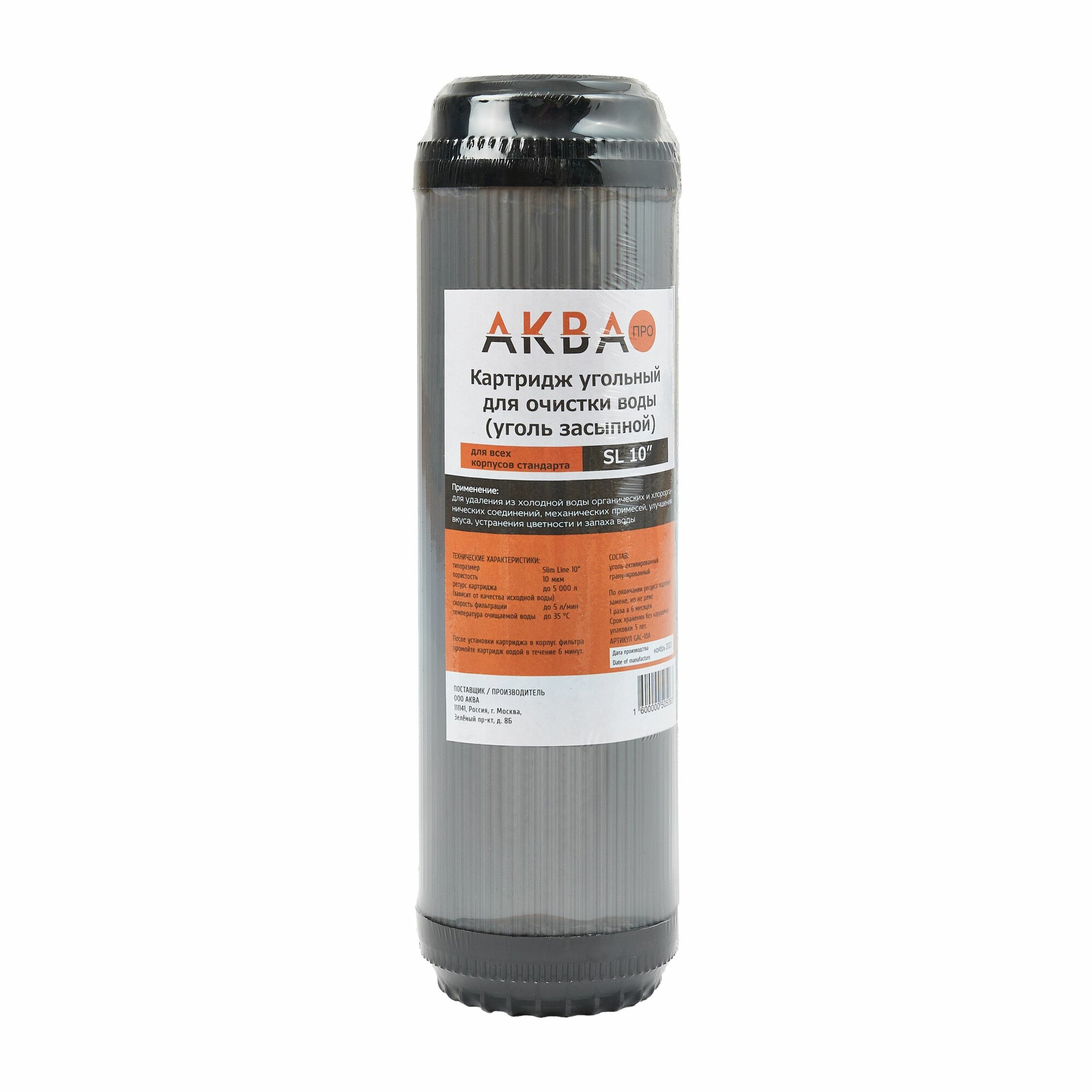 Аква про Картридж с гранулированным кокосовым углём 20мкм 10SL Кит. GAC-10A. 406 интересное:
