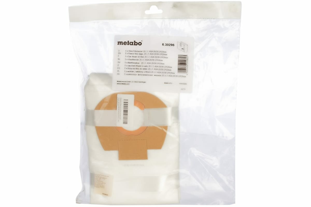 Аксессуар для пылесоса Мешки Metabo 630296000 для ASA25/30 L PC Inox 5шт .