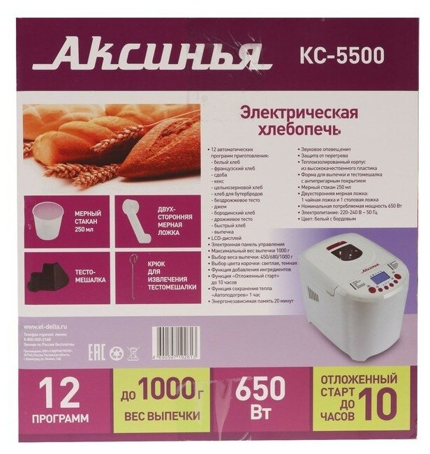 Аксинья Хлебопечка "аксинья" КС-5500, 600 Вт, 12 программ, бело-бордовая