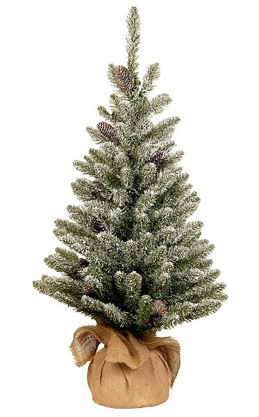 Ель настольная "Первые заморозки" в мешочке заснеженная, с шишками, хвоя - PVC, 91 см, National Tree Company