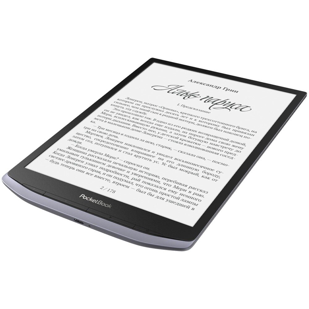 | Плюсы: | Читалка отличная. До этого у меня были только 6-дюймовые модели, и я долго мечтал о большой. Теперь читать техническую литературу со схемами, графиками или фрагментами кода – одно удовольствие. Благодаря сервису Pocketbook Cloud, появилась возможность синхронизировать книги, закладки и заметки с разными устройствами. Я часто делаю пометки в книгах, и раньше мне очень не хватало возможности обрабатывать их на компьютере. Ещё к плюсам я отнёс бы кнопку включения на передней панели. Нажимать её на торце на моей предыдущей читалке было очень неудобно. Ну и USB Type C – несомненный плюс, особенно, если рассматривать в перспективе. В ближайшие годы на него перейдут все.