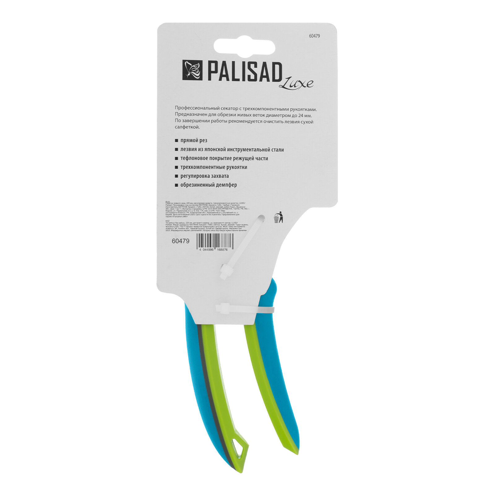 Секатор прямого реза Palisad 225 мм, регулировка захвата, трехкомпонентные рукоятки 60479
