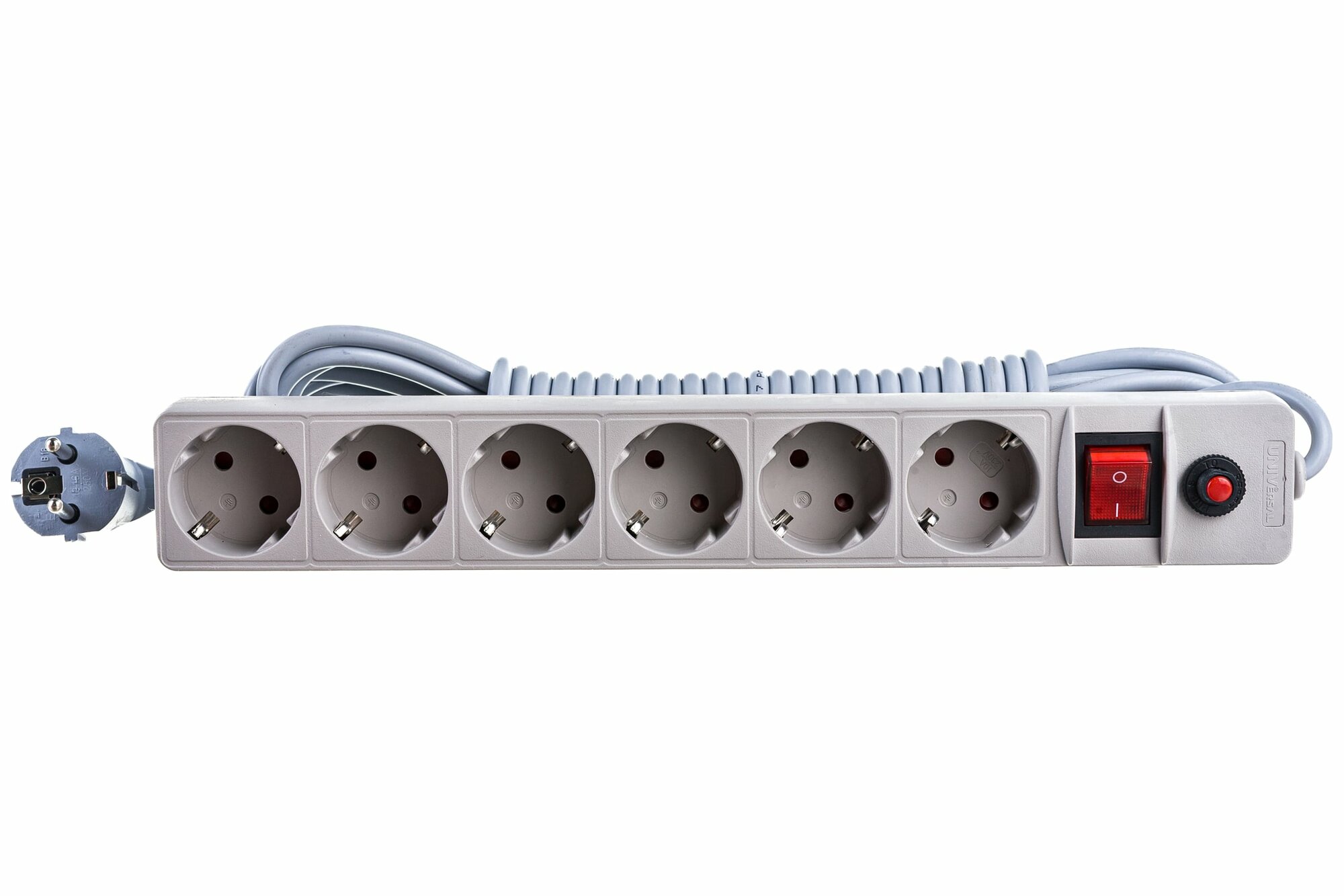 Сетевой фильтр UNIVersal ПВС 3х0.75 6 роз. 10 м 10А серый, земля, выкл., шторки 967U-5010 Россия