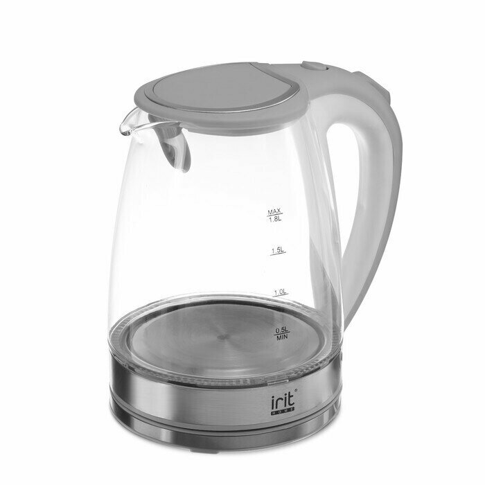 Чайник электрический Irit IR-1236, стекло, 1.8 л, 1500 Вт, подсветка, серебристый IRIT 4787993