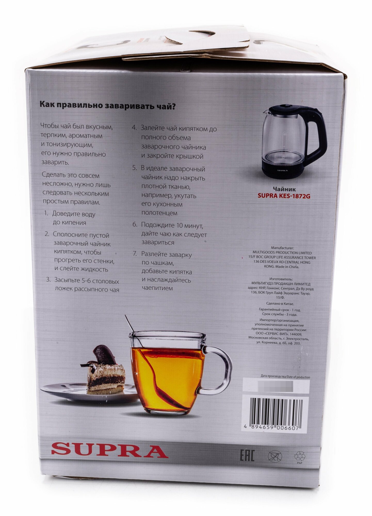 Чайник электрический Supra KES-1872G 1500 Вт чёрный 1.8 л стекло