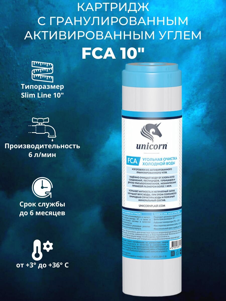 Купить Картридж Unicorn FCA 10"SL, активированный уголь, устраняет примеси хлора