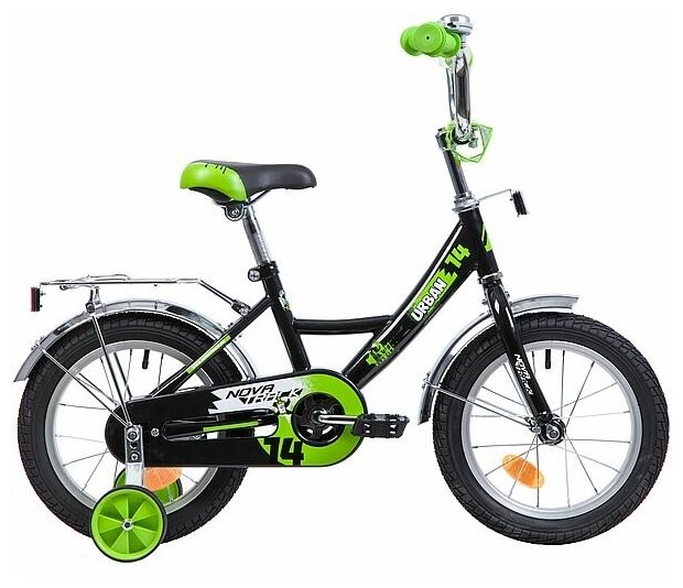 NOVATRACK URBAN 14" (2020) (Велосипед NOVATRACK 14" URBAN чёрный, полная защ.цепи, тормоз нож, крылья и багажник хром)