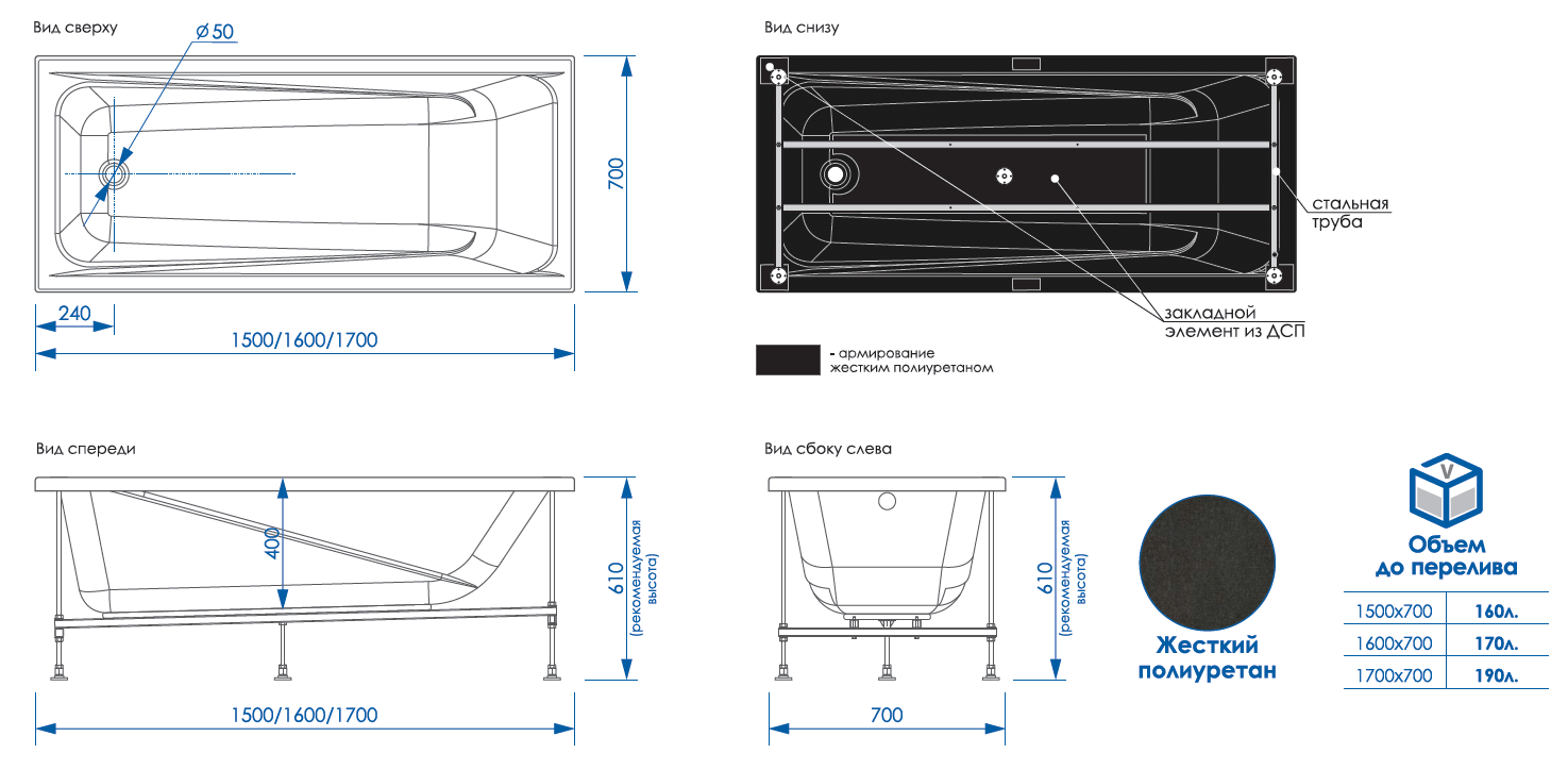 Ванна акриловая метакам LIGHT 1700х700мм на каркасе интересное: