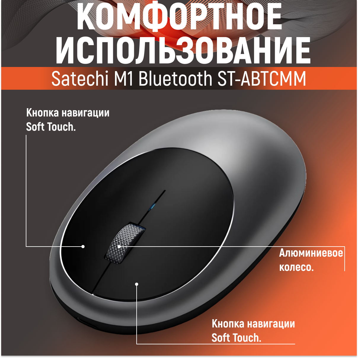 Мышь беспроводная Satechi M1 ST-ABTCMS, эргономичный дизайн с Soft Touch, серебристая