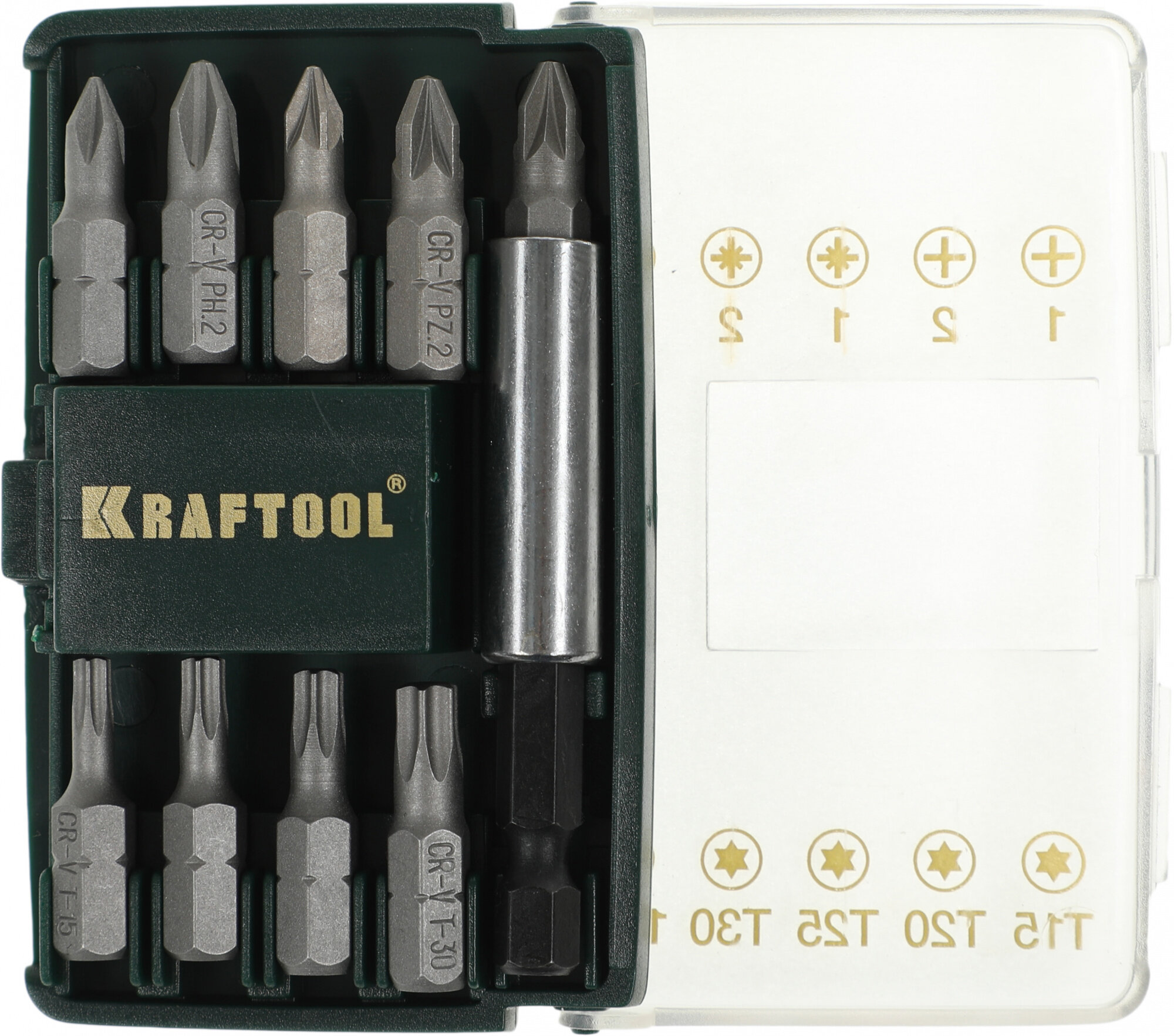 Набор бит Kraftool, 10 шт, магнитный адаптер, плотный бокс