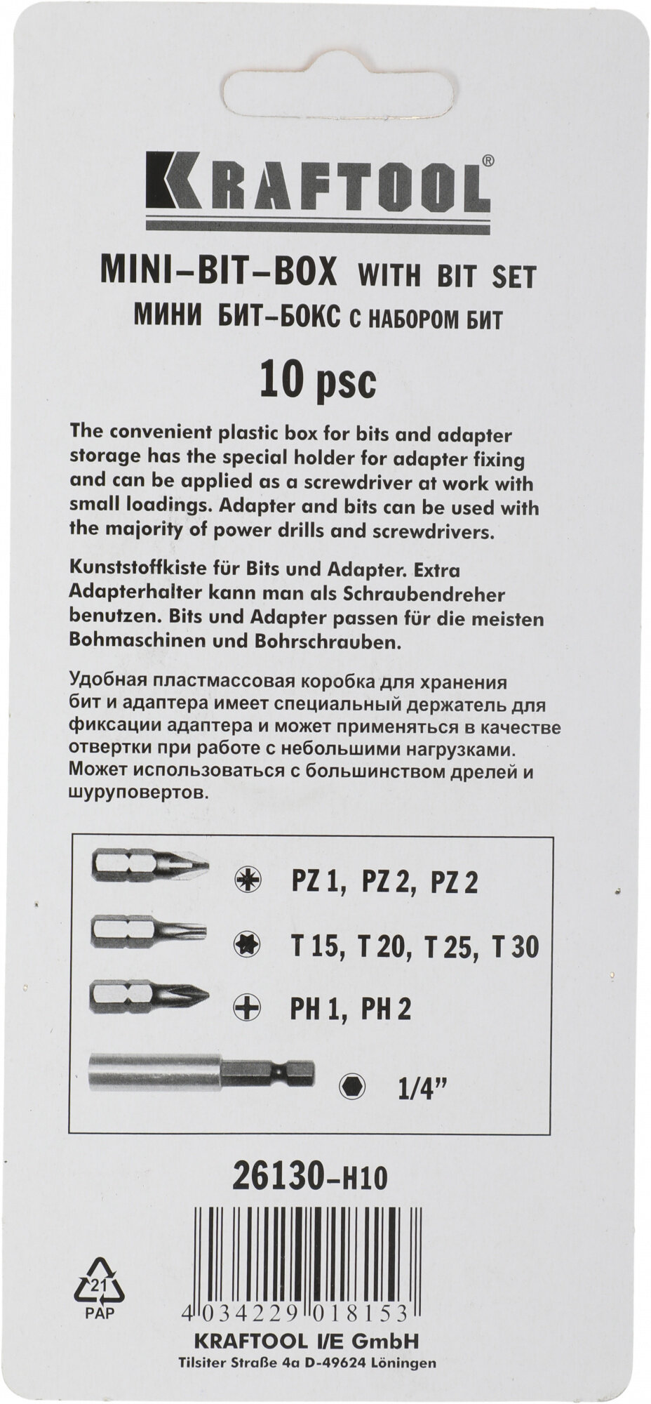 Набор бит "COMPACT-10" с магнитным адаптером, KRAFTOOL 26130-H10, в мини бит-боксе, 10 предметов