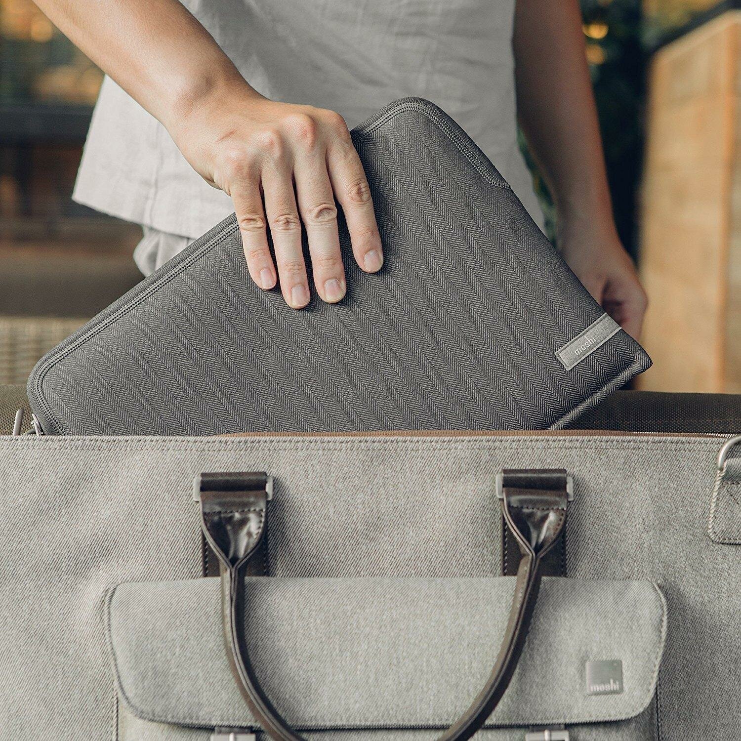 Чехол Moshi Pluma для MacBook Pro/Air 13" (USB-C) серый (Herringbone Gray)