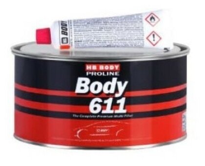 Шпатлевка HB BODY "611 MultiFiller", универсальная, наполняющая, среднезернистая, 2К, банка 1.8 кг с отвердителем