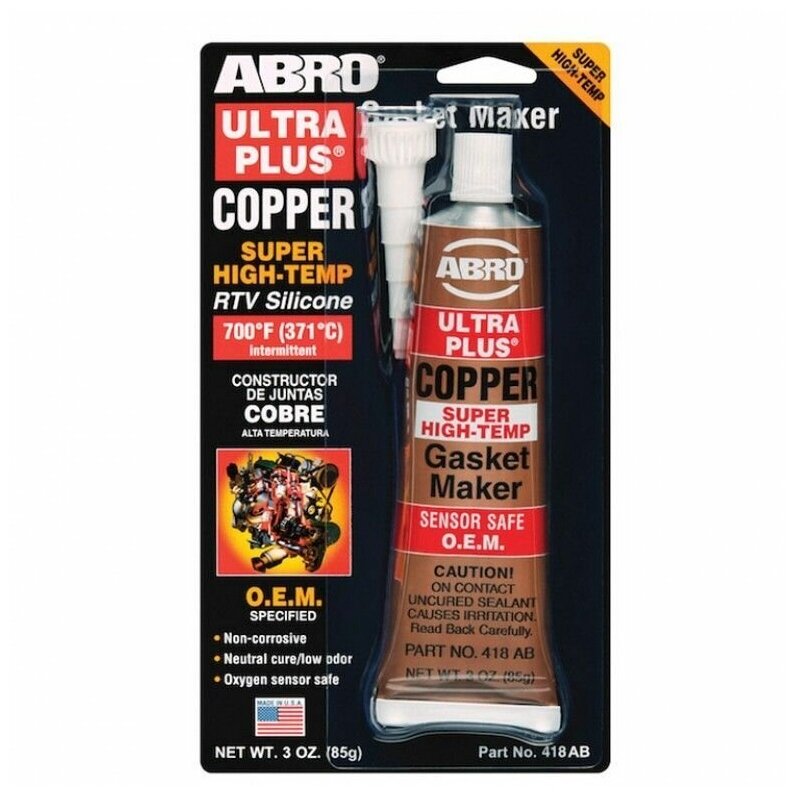 Герметик для ремонта автомобиля ABRO силиконовый 418-AB-R прокладок O.E.M. высокотемпературный, медный , 85 гр