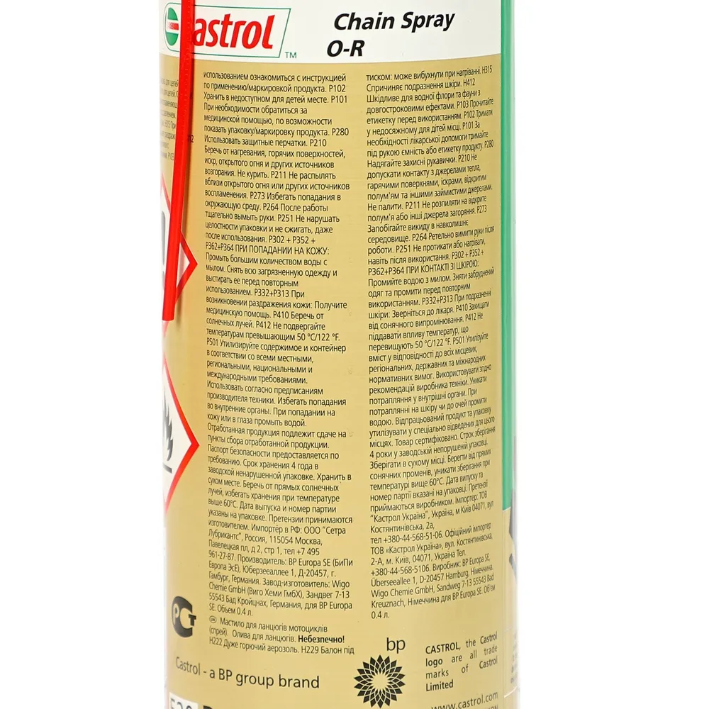 CASTROL 155C96 Смазка-спрей для цепи мотоциклов Chain Spray O-R 0.4л 1шт