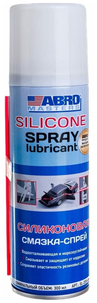 Смазка аэрозольная ABRO Masters Silicone Spray Lubricant многоцелевая, силиконовая, водостойкая, баллон 200мл, арт. SL-200-AM-RE