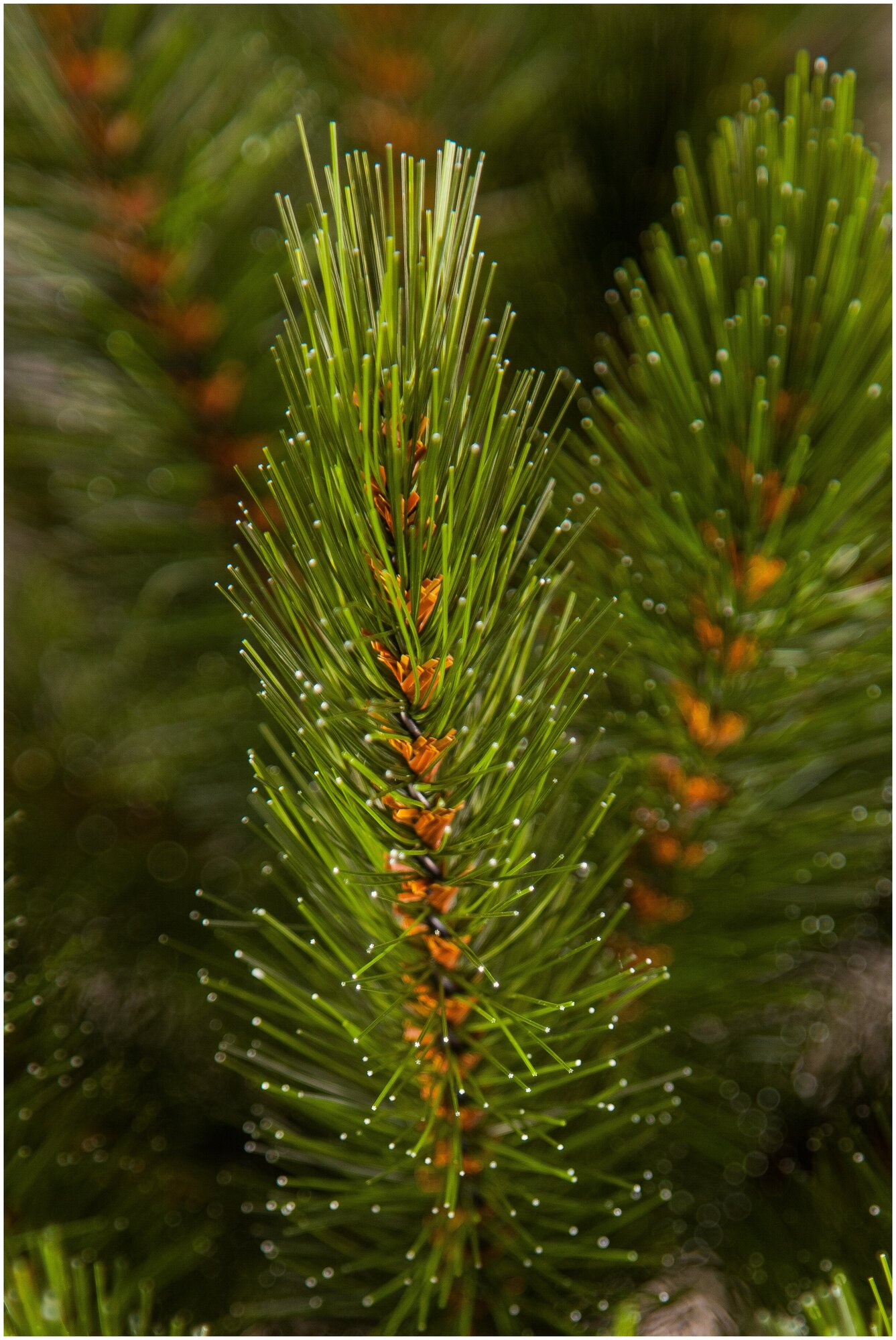На концах иголок небольшие белые точки (имитация инея) |