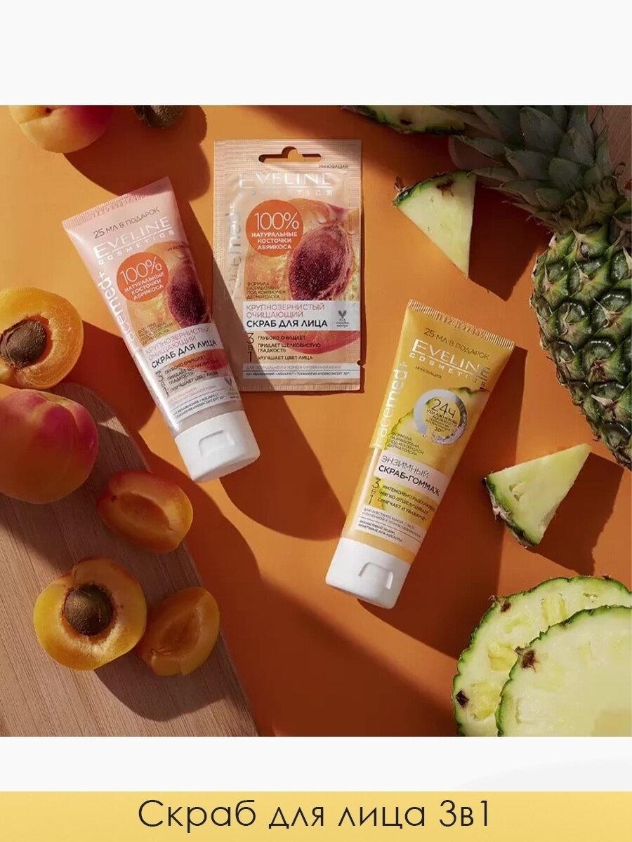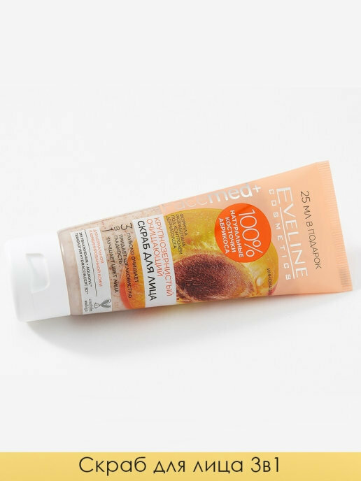 Ниже Вы можете прочитать отзывы на Скраб для лица EVELINE FACEMED+ 3 в 1 крупнозернистый очищающий (с 100% натуральными косточками абрикоса) 75 мл, ознакомится с подробными характеристиками, посмотреть интересные обзоры и фотографии на Скраб для лица EVELINE FACEMED+ 3 в 1 крупнозернистый очищающий (с 100% натуральными косточками абрикоса) 75 мл.