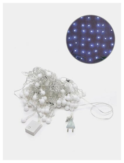 Купить Гирлянда "Светодиодный Дождь" 1.5х1.5 м с 8 режимами свечения с насадками "Шарики", 144 LED, цвет свечения: Белый