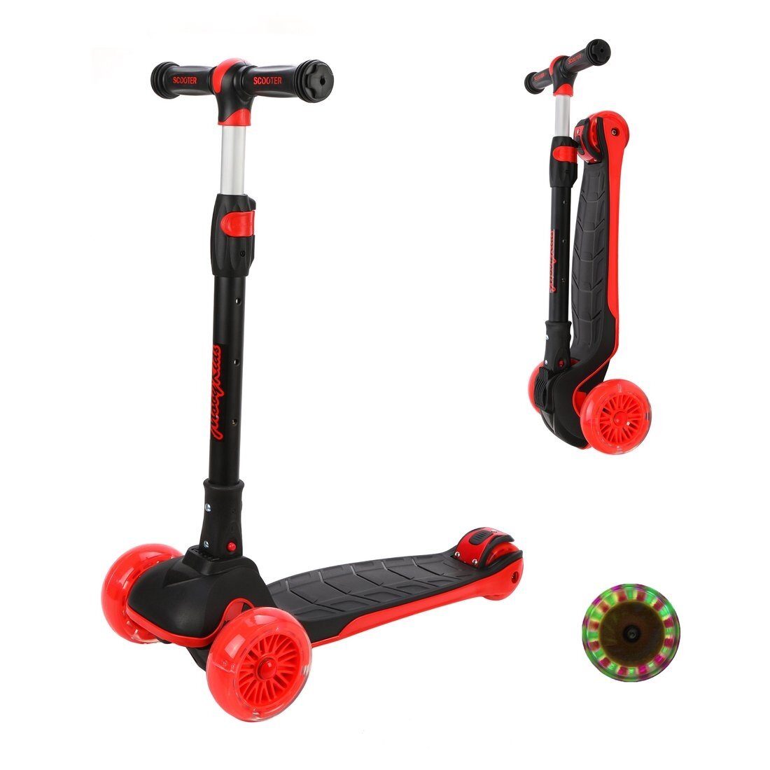 MOBY KIDS самокат складной PU 120 мм - красный (светящиеся колеса)
