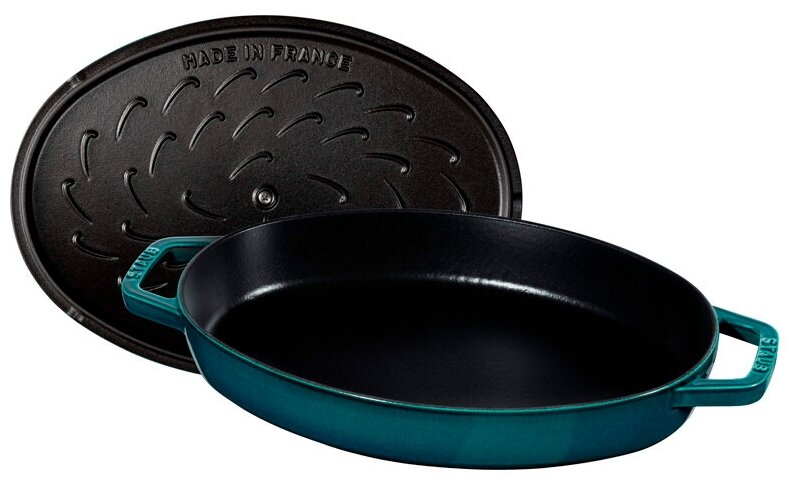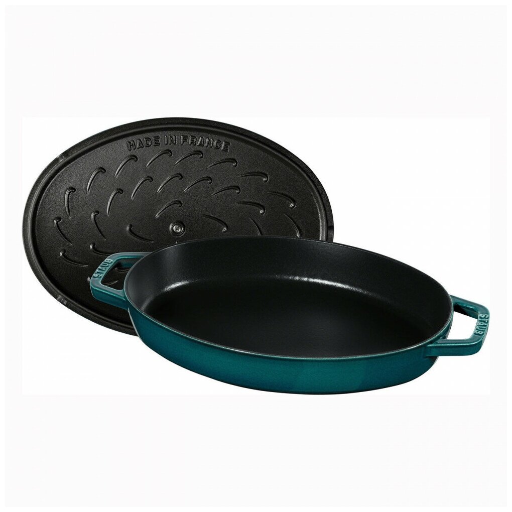 Сковорода овальная для рыбы STAUB , 32 см, с чугунной крышкой, морская