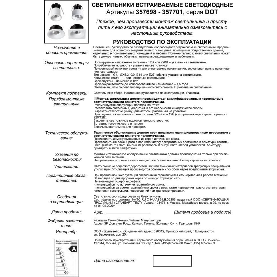 357700 NT18 000 Встраиваемый светодиодный светильник Novotech Dot