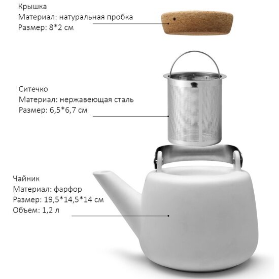 VIVA Scandinavia Nicola™ Чайник заварочный с ситечком 1,2 л, фарфор/пробка, серый