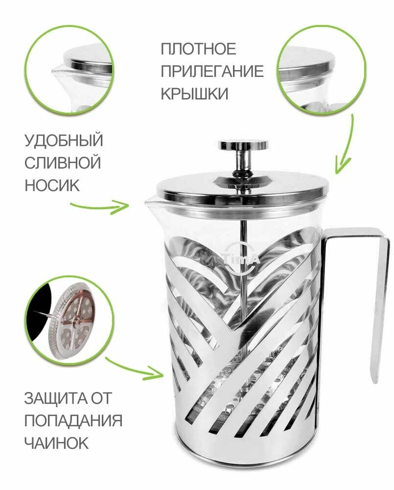 Френч-пресс 0,6л TIMA Безе из нержавеющей стали и боросиликатного стекла