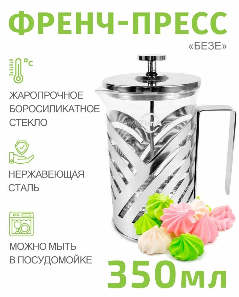 Френч-пресс "безе" 350мл. нержавеющая сталь, боросиликатное стекло. интересное: