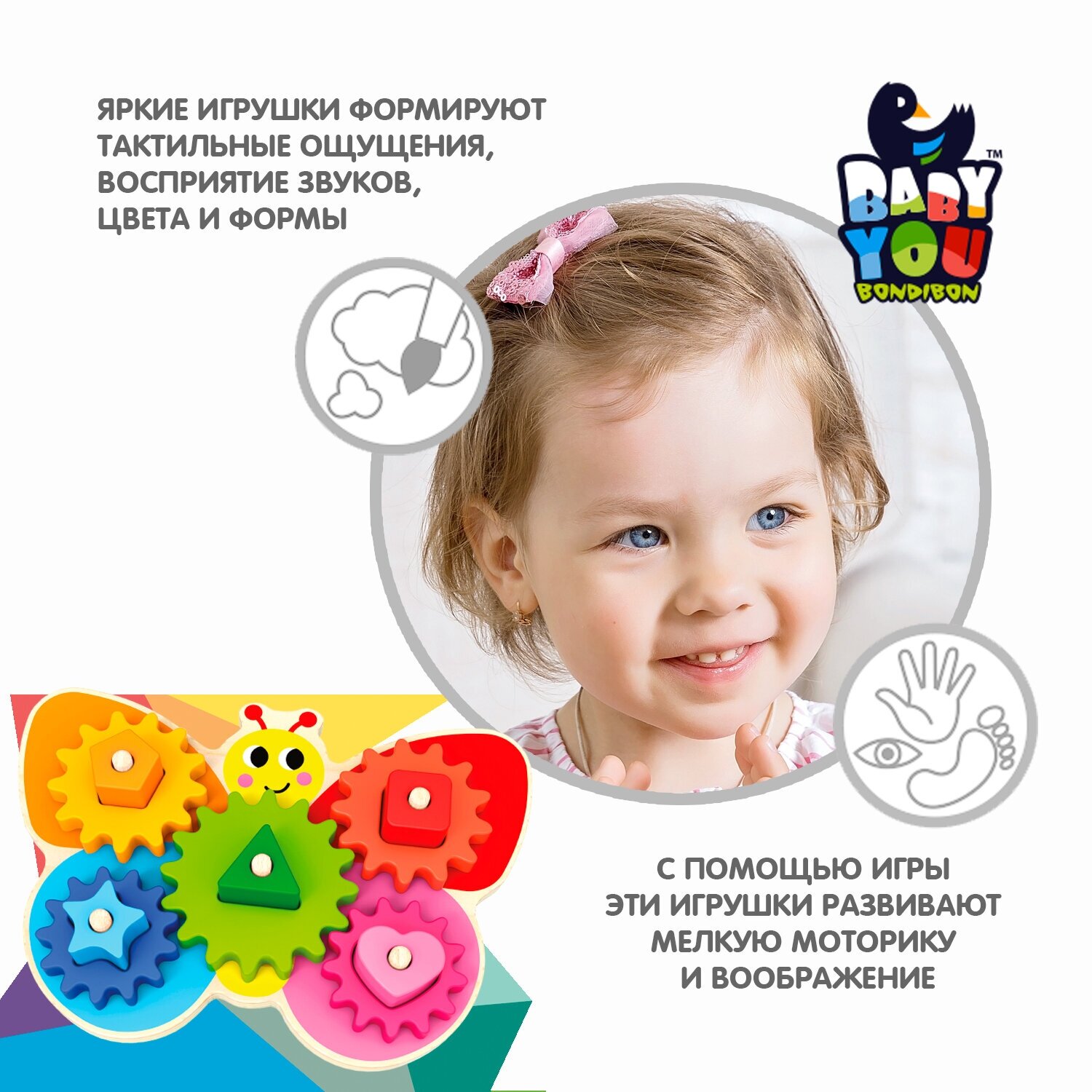 Купить Игр.дерев. Bondibon с шестеренками и фигурами бабочка, BOX