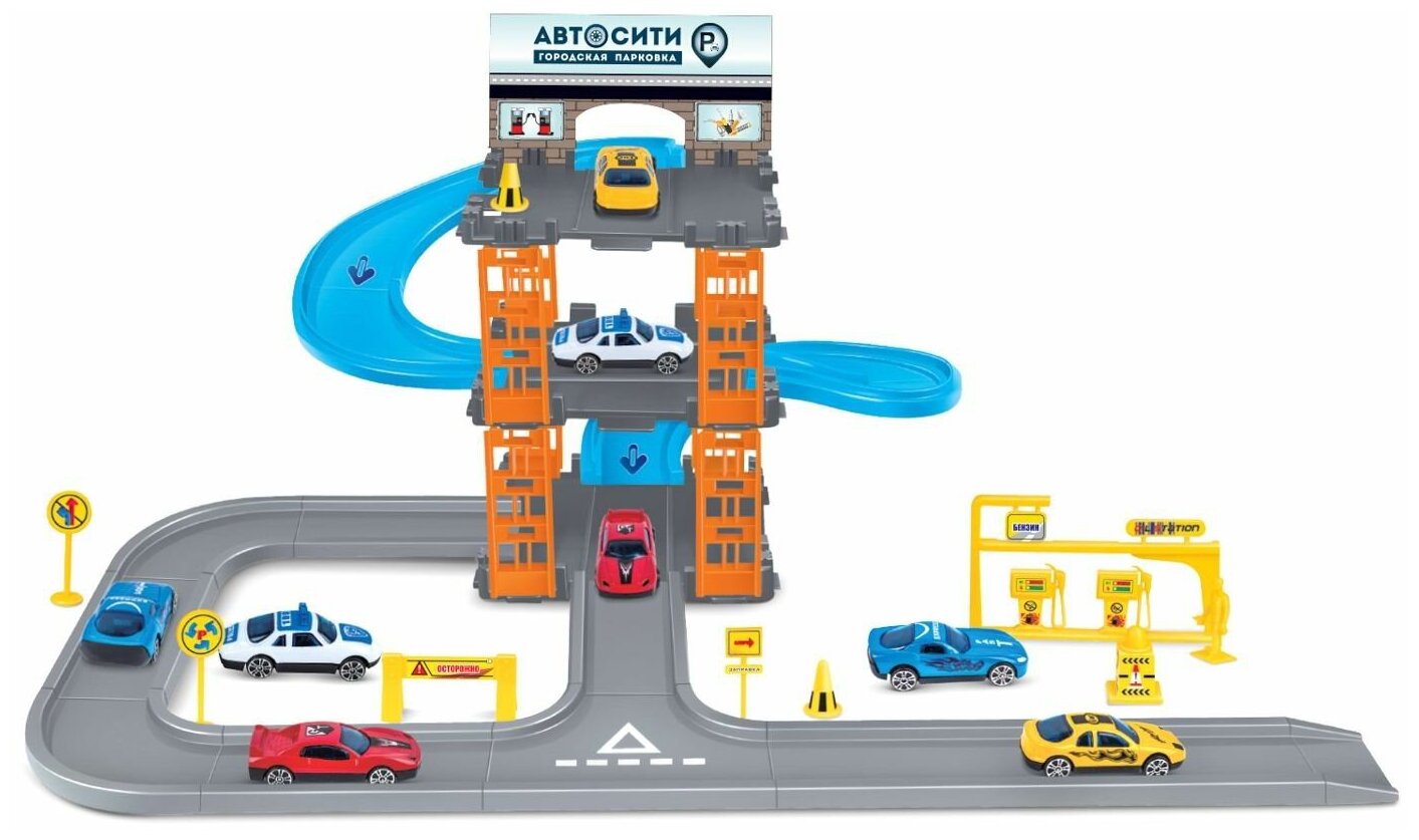 Парковка АвтоСити, 3-х уровневая в наборе с машинками и игровыми предметами