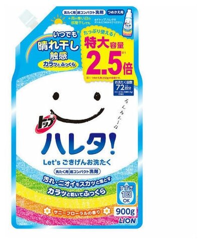Купить "Супер-концентрированный гель Lion Top Hareta для стирки и быстрой сушки (придающий объем и аромат солнечных цвето), мягкая упаковка с крышкой, 900 г"