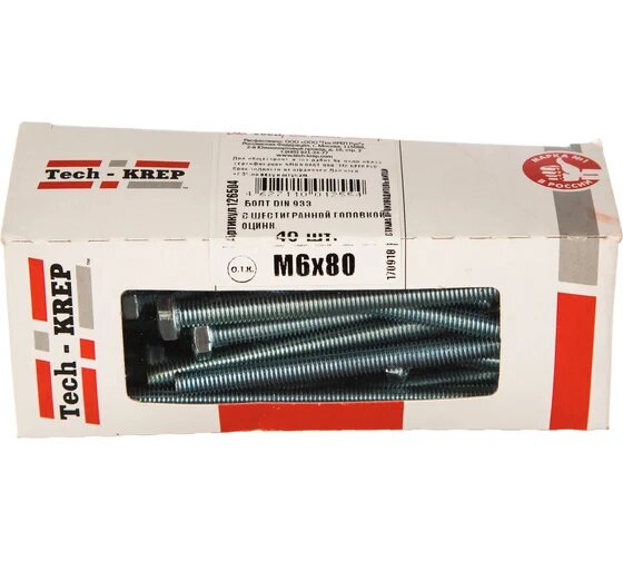 Купить Tech-Krep Болт DIN933 с шестигранной головкой оцинк. М6x80 40 шт - коробка с ок. Tech-Kr 126504