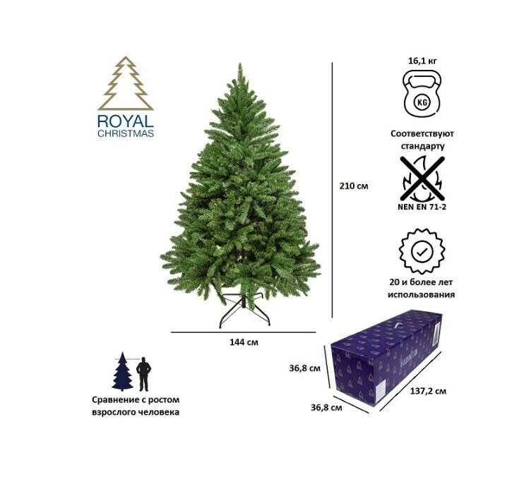 Елка искусственная Royal Christmas Washington Premium PVC 210см, арт. 230210