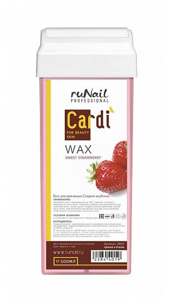 ruNail, Воск для депиляции Cardi Сладкая клубника, 100 мл интересное: