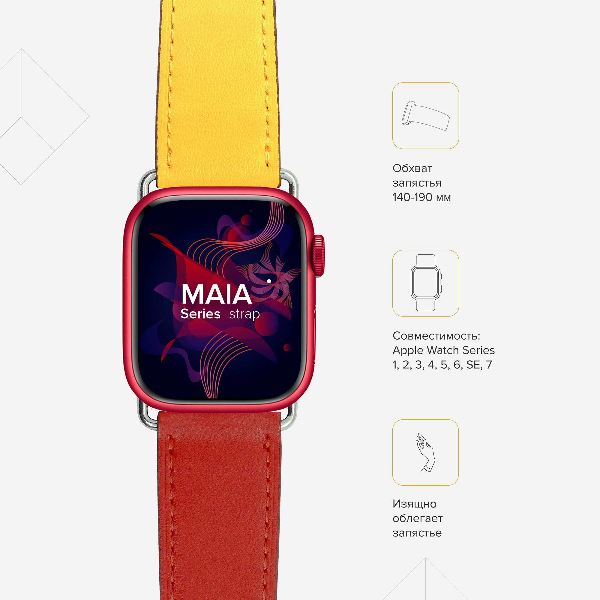 Кожаный ремешок для Apple Watch 42/44/45 mm Series 1-7, SE LYAMBDA MAIA LWA-03-44-RY , желтый, красный, розовый