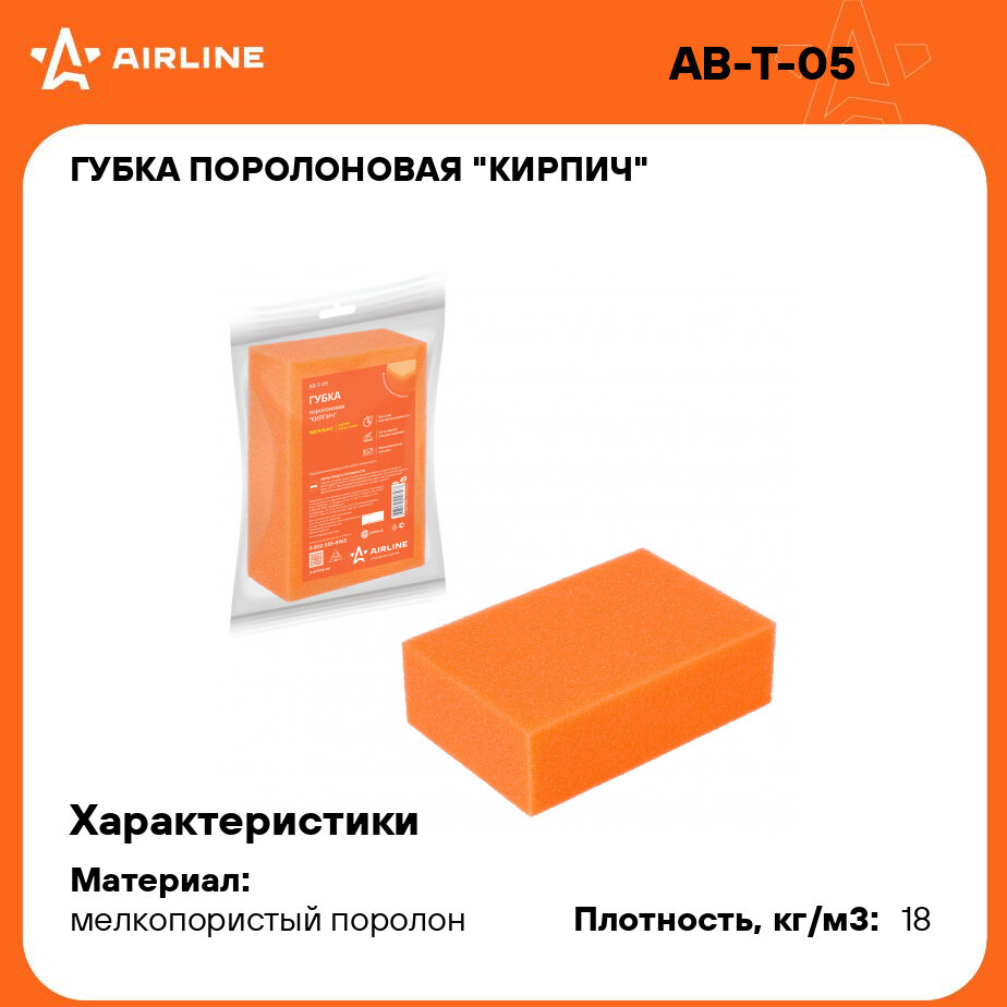 ABT05 AIRLINE Губка поролоновая Кирпич (16*11*5см) (пакет с европодвесом) (AB-T-05)