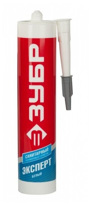 Герметик силиконовый санитарный Зубр эксперт 41235-0 для помещений с повышенной влажностью, силиконовый, белый 280 мл.