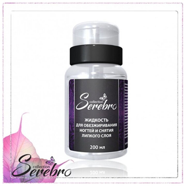Serebro, жидкость для обезжиривания ногтей и снятия липкого слоя (с помпой), 200 мл