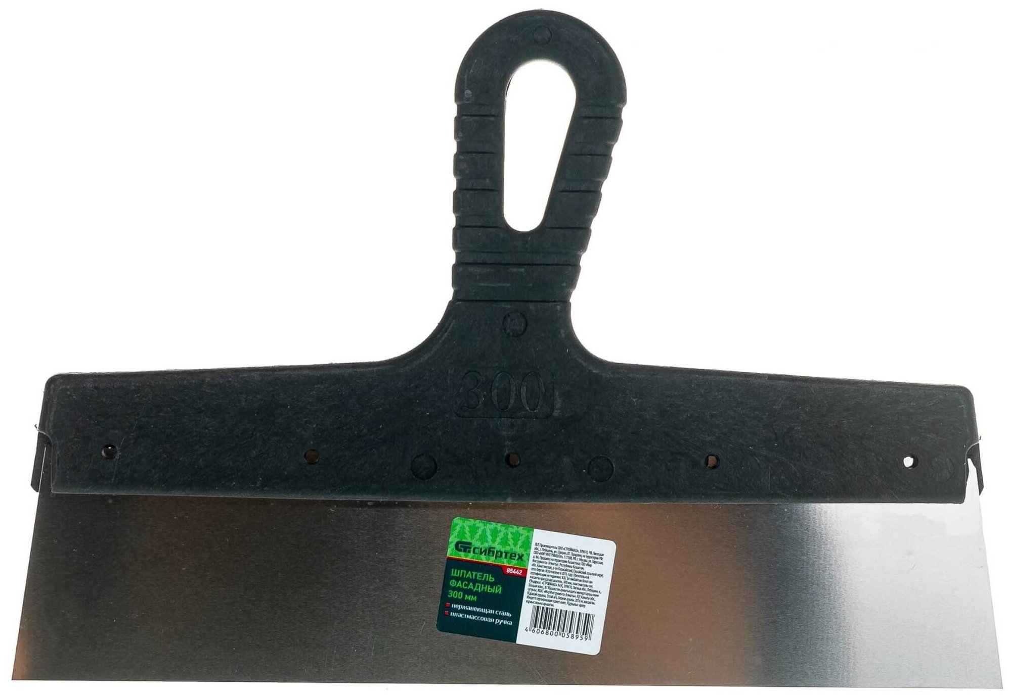 Шпатель фасадный из нержавеющей стали, 300 мм, пластмассовая ручка СИБРТЕХ 85442