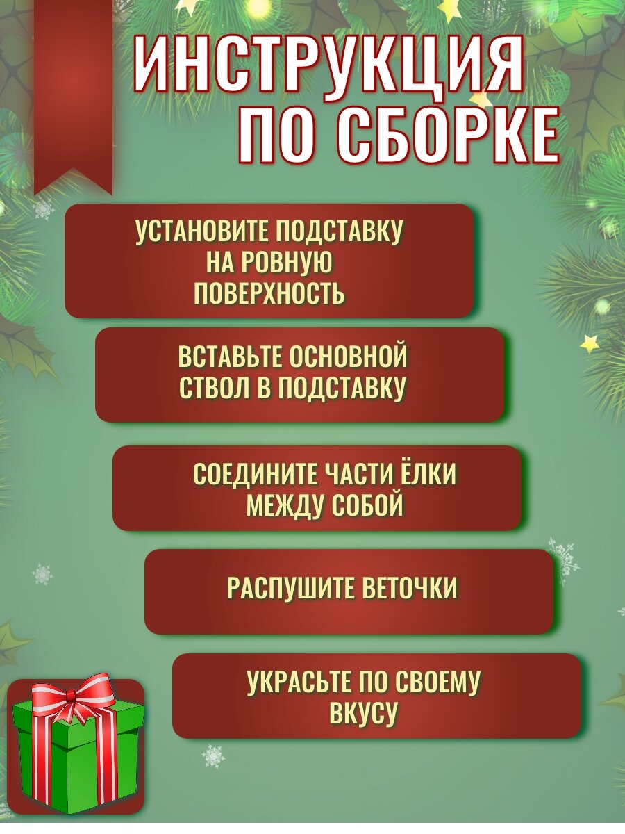 | Минусы: | достаточно сильно осыпаются иголки, ненадежная пластиковая подставка - при перемещении (подъеме) елки ножки отпадают, если бы подставка фиксировалась было бы значительно лучше |