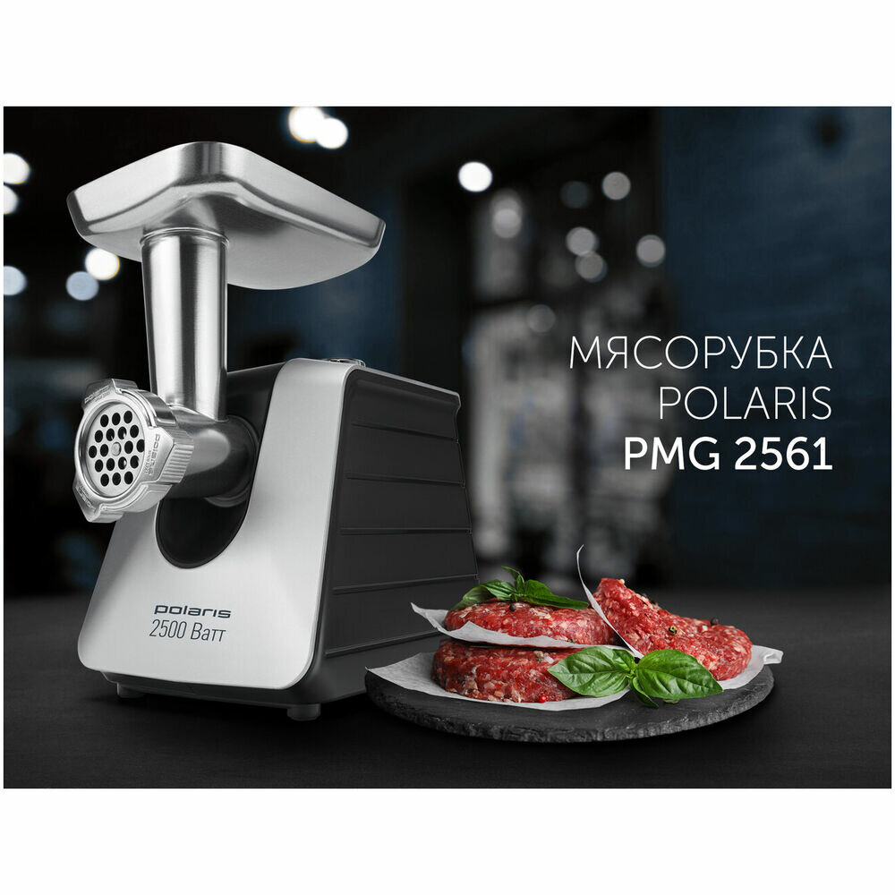 Мясорубка POLARIS PMG 2561 черный/серебристый